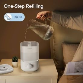 Dispozitiv 2 în 1 ce asigură umidificare eficientă, filtrare aer, funcție timer și aromaterapie pentru confort sporit.